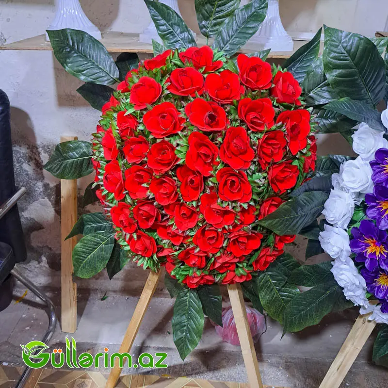 🌹 Süni Gül Çələngi – Təsvir (Qızılgül, Qərənfil və Qarışıq Kompozisiyalar üçün)