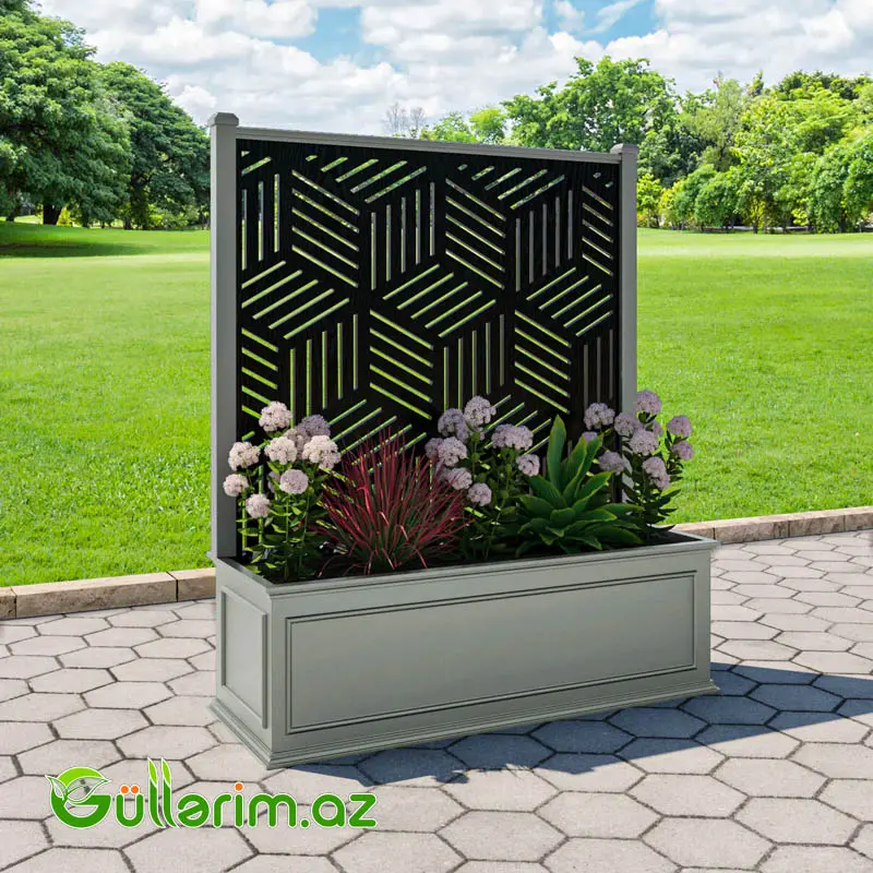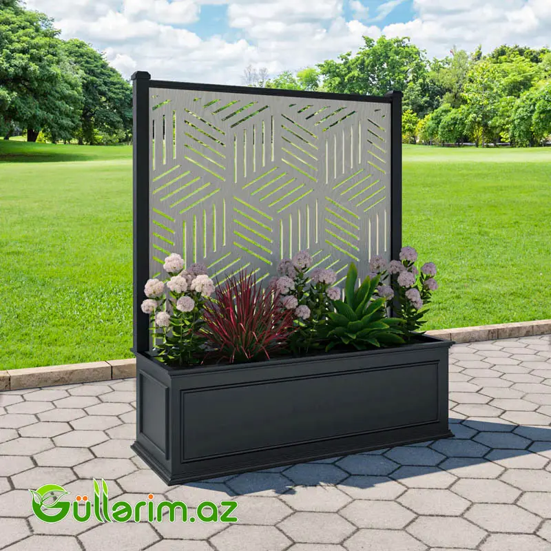 Bu model – Windsor Extra Large Low Planter – sənin istehsal etdiyin metal karkas + DIKT (kontrplak) gövdə konstruksiyası əsasında hazırlanmış premium dekorativ dibçək və dekor screen panelindən ibarət müasir dizaynlı sistemdir.