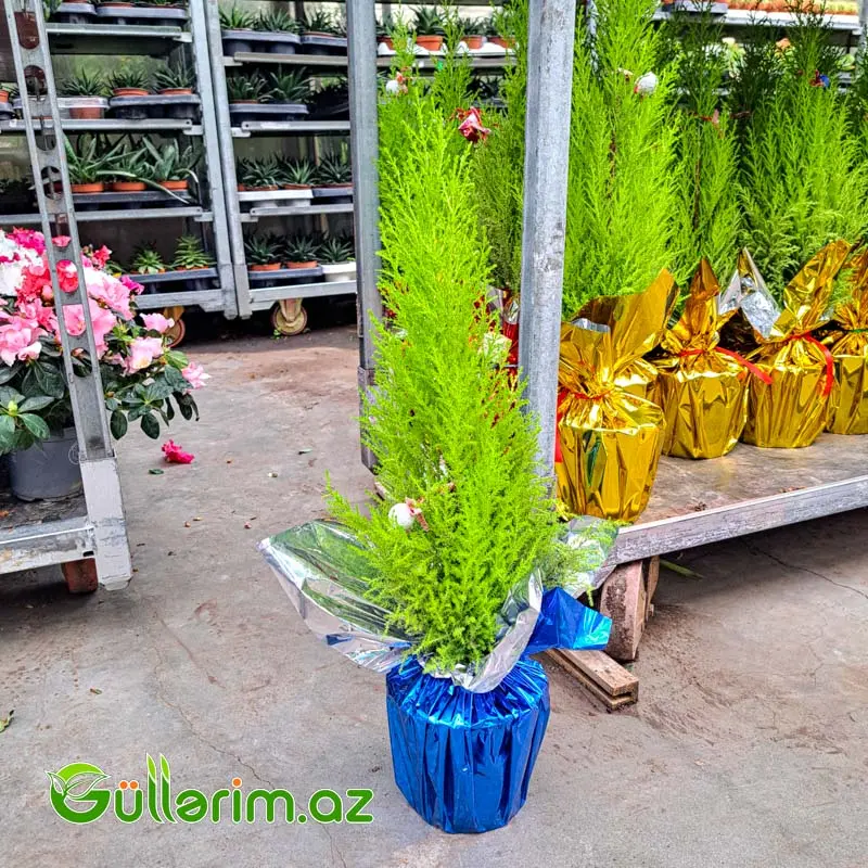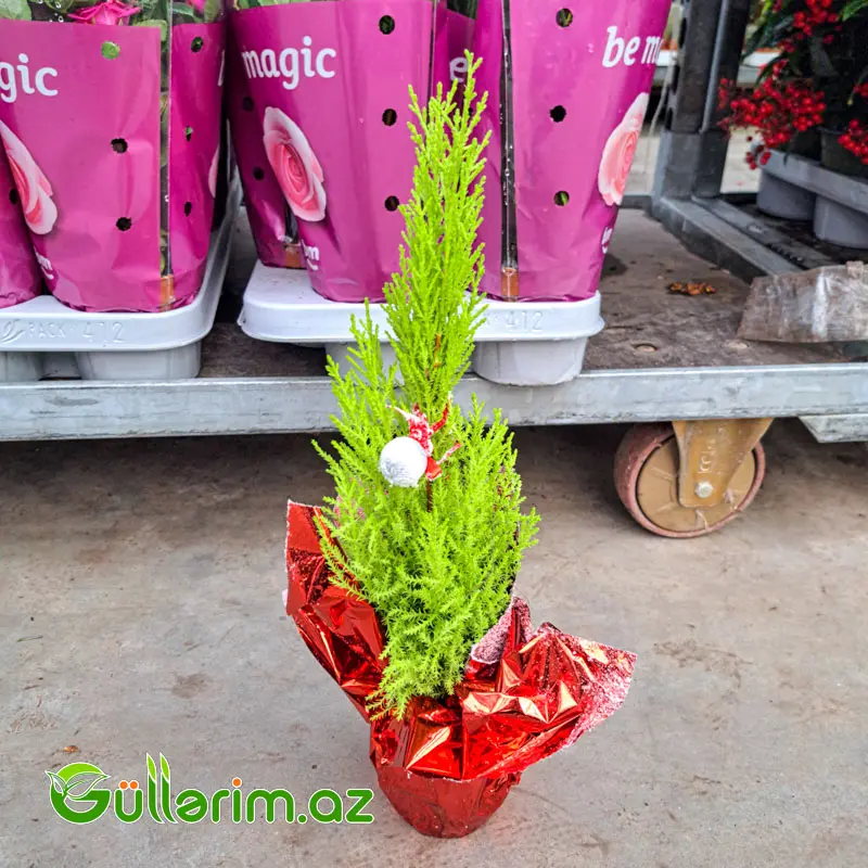 Material: Mini süni şam ağacı, tekstil Şaxta Baba fiquru, metal dekor qabı