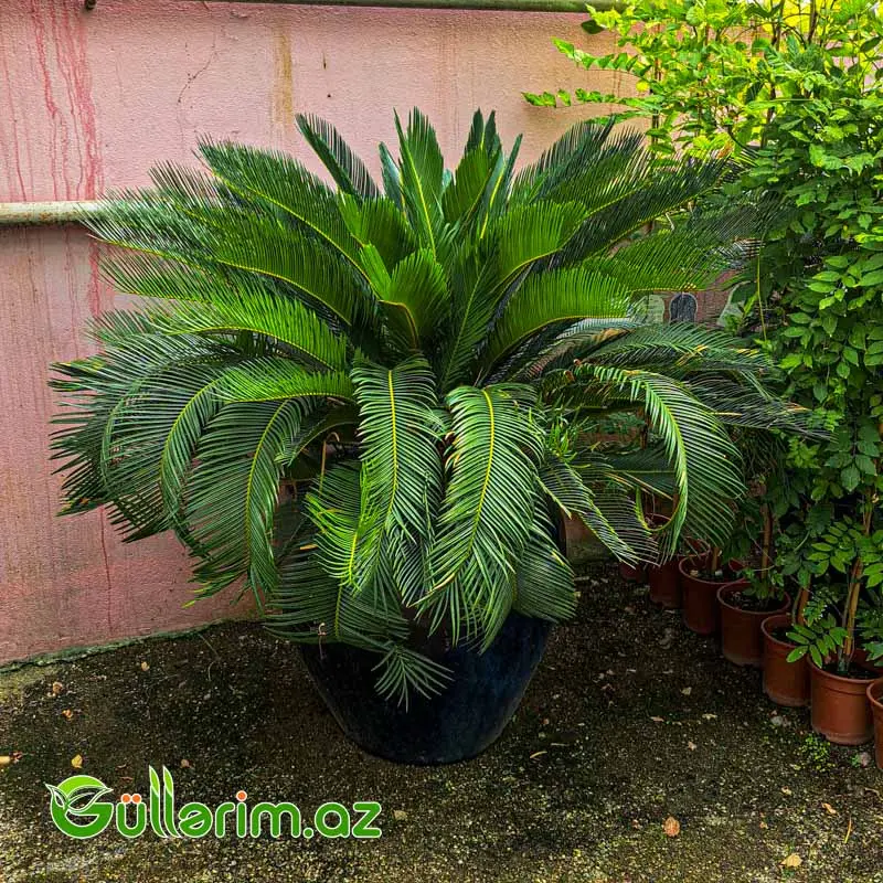 bütün dünyada “Sago Palm” kimi tanınan, prestijli və uzunömürlü dekorativ bitkidir. Simmetrik şəkildə açılan möhkəm və parlaq yaşıl yarpaqları ona klassik palma görünüşü verir. Buna görə geniş salonlar, ofislər, bağlar və giriş hissələri üçün premium dekor elementi sayılır.