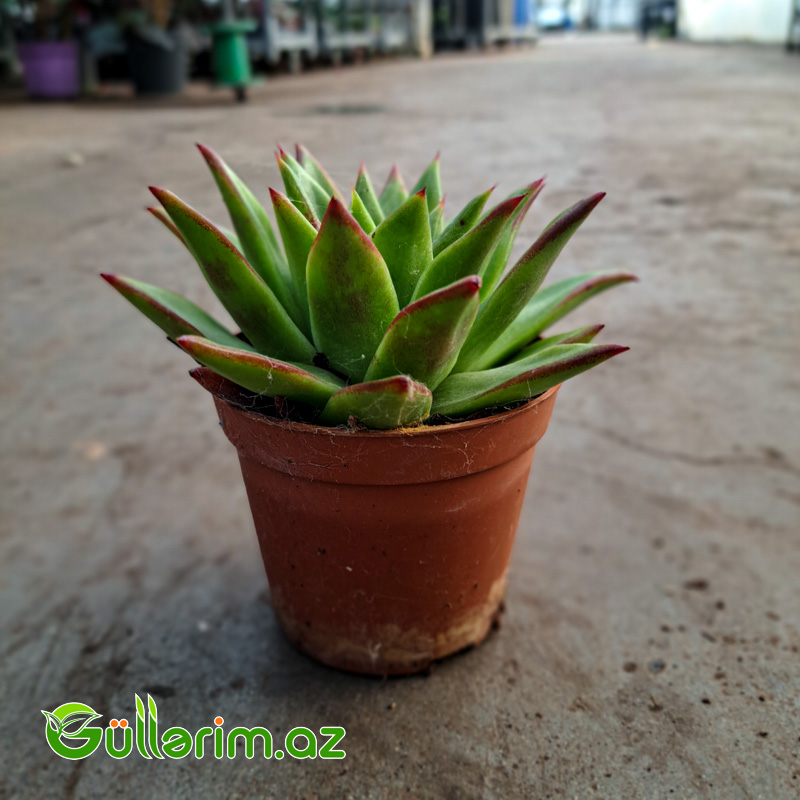 Bu növ Echeveria Meksika mənşəlidir və Crassulaceae ailəsinə daxildir. Yarpaqları qalın, üçbucaq formalı və parlaq yaşıl rəngdədir, uclarında tünd qırmızı və ya bənövşəyi vurğular olur.