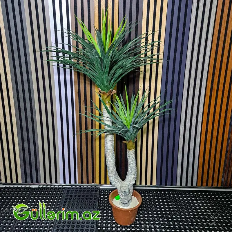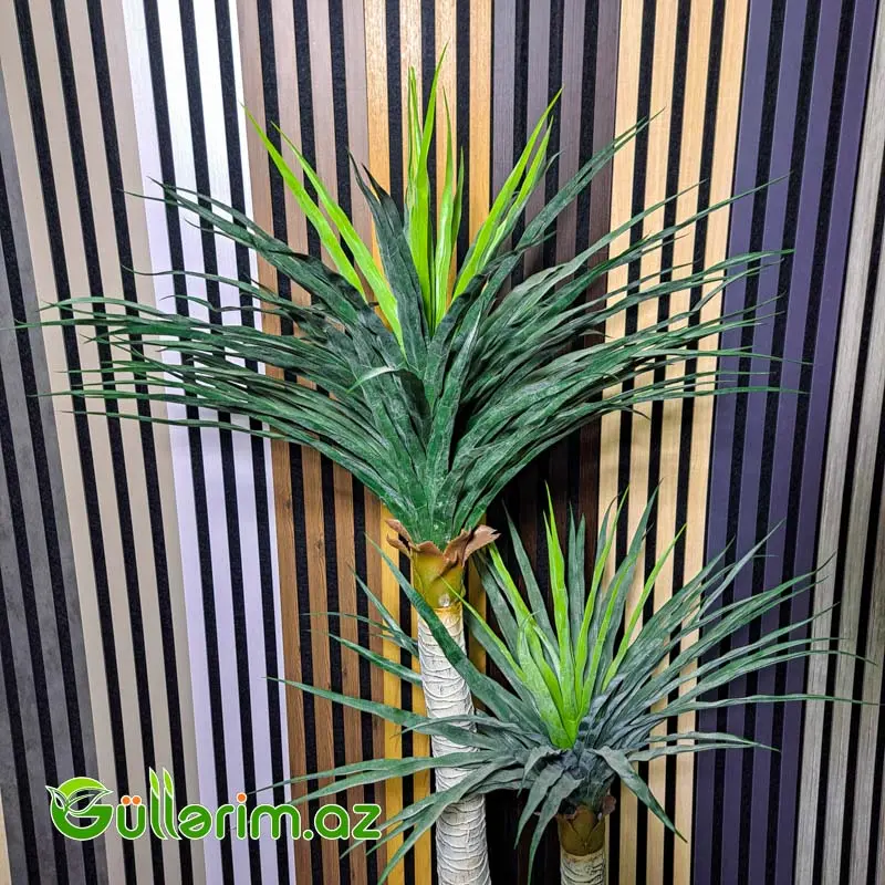 Süni Yukka ağacı modern və minimal interyerlər üçün çox seçilən dekorativ bitkidir. Qalın gövdəsi və yuxarı doğru açılan sərt, sivri yarpaqları ilə güclü və estetik görüntü yaradır. Təbii Yukka az su tələb edən, davamlı bitkidir; süni variantı isə tamamilə baxımsızdır və il boyu formasını qoruyur.