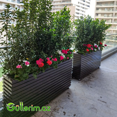 • Eyvan və teraslarda iri güllər, dekorativ kollar və ya həmişəyaşıl bitkilər üçün.