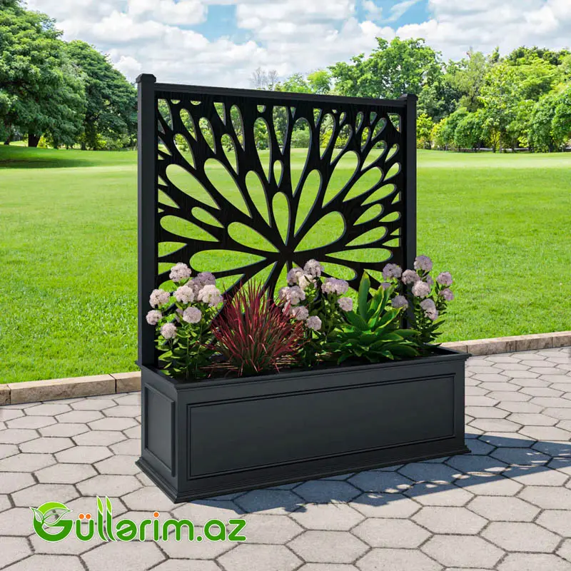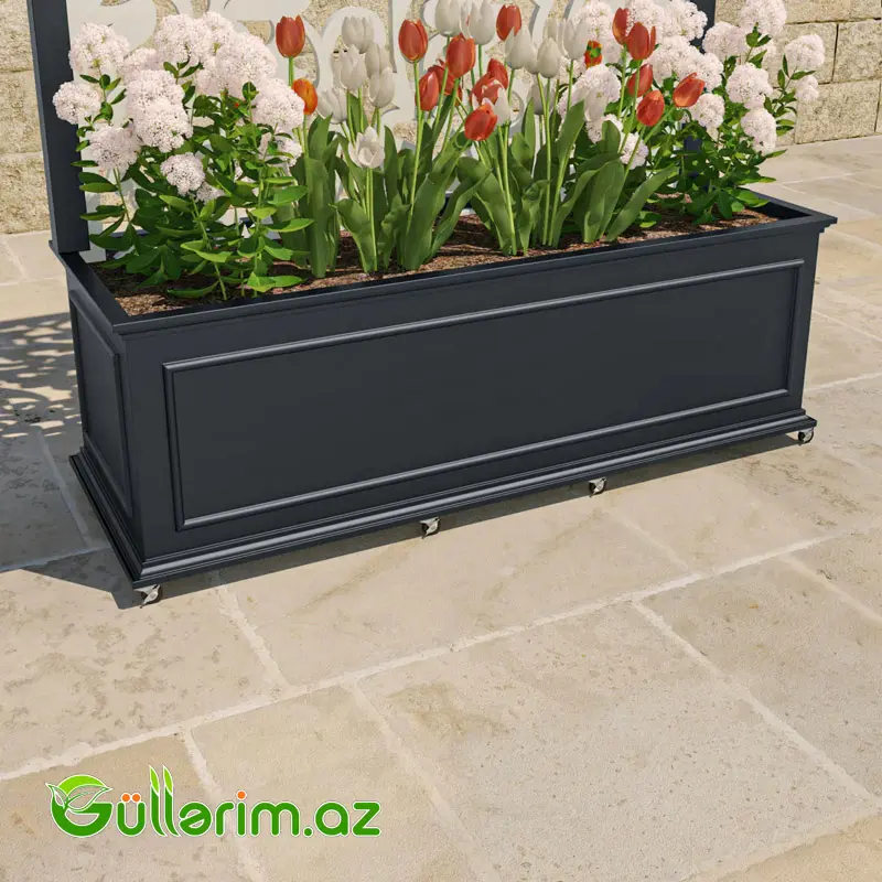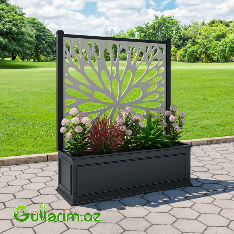 Bu model – Windsor Extra Large Low Planter – sənin istehsal etdiyin metal karkas + DIKT (kontrplak) gövdə konstruksiyası əsasında hazırlanmış premium dekorativ dibçək və dekor screen panelindən ibarət müasir dizaynlı sistemdir.