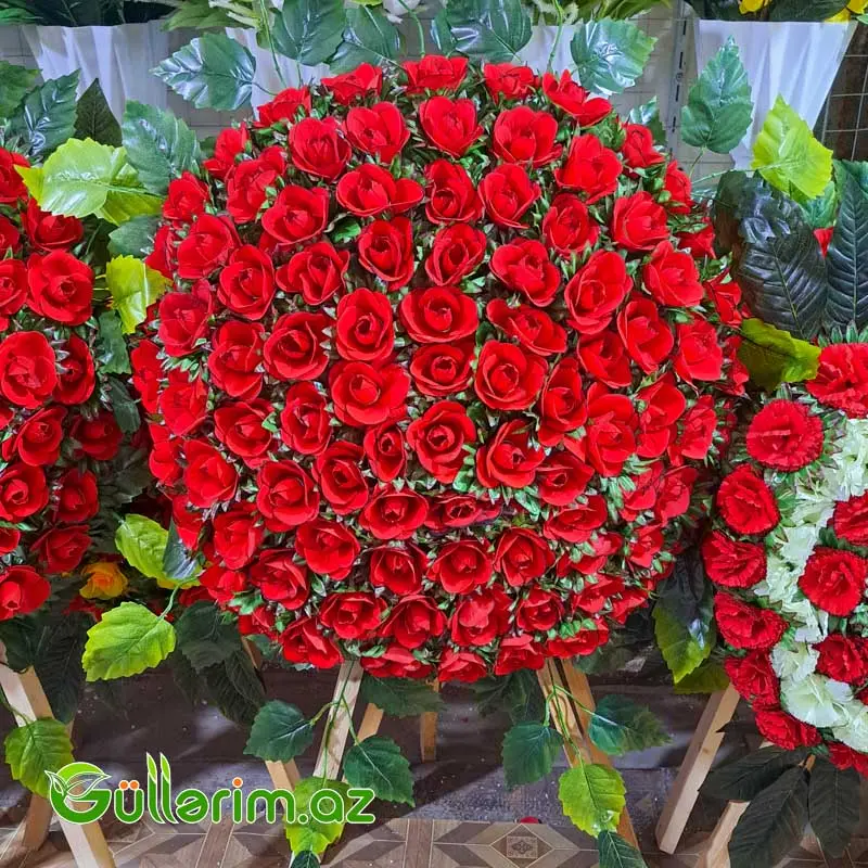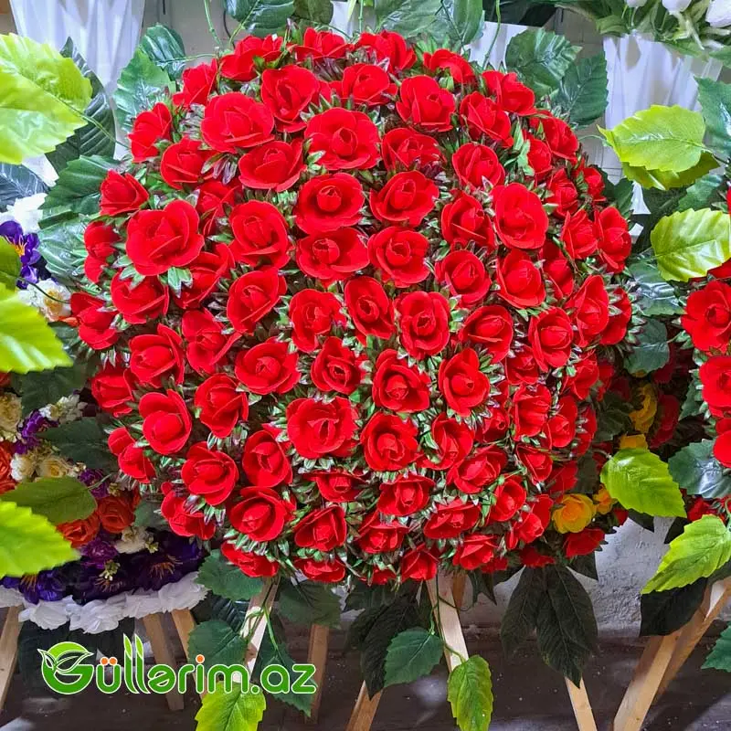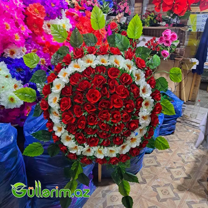🌹 Süni Gül Çələngi – Təsvir (Qızılgül, Qərənfil və Qarışıq Kompozisiyalar üçün)
