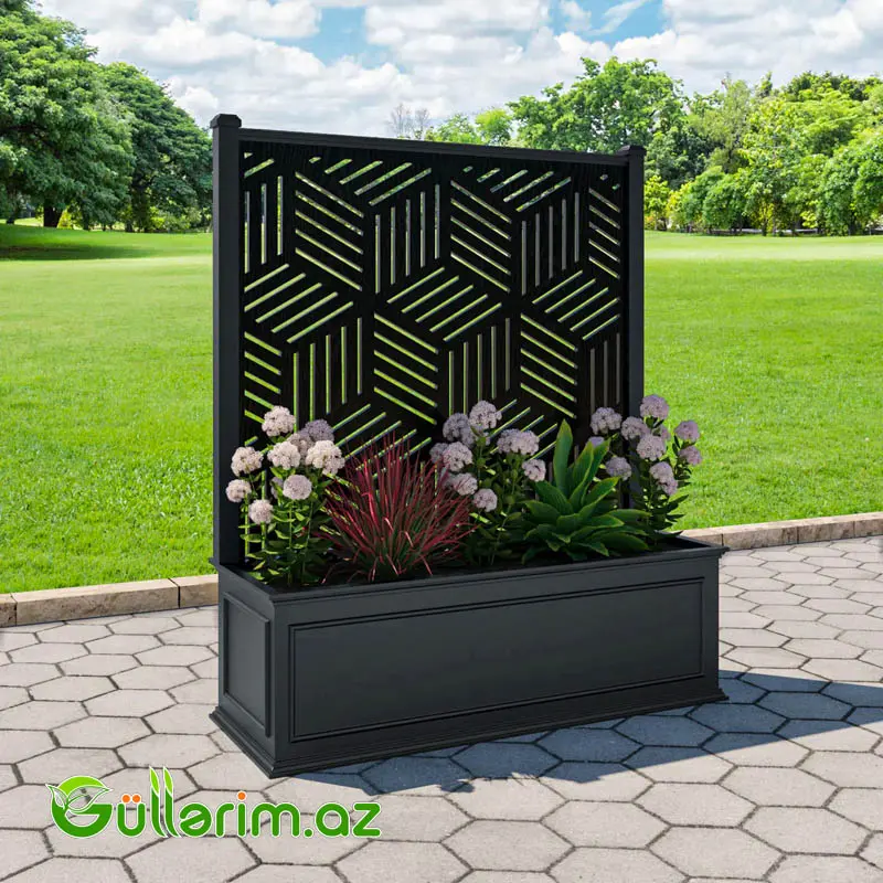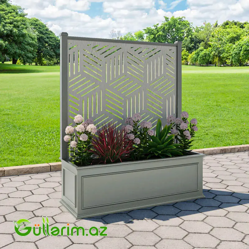 Bu model – Windsor Extra Large Low Planter – sənin istehsal etdiyin metal karkas + DIKT (kontrplak) gövdə konstruksiyası əsasında hazırlanmış premium dekorativ dibçək və dekor screen panelindən ibarət müasir dizaynlı sistemdir.