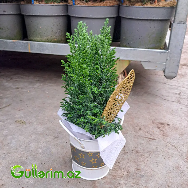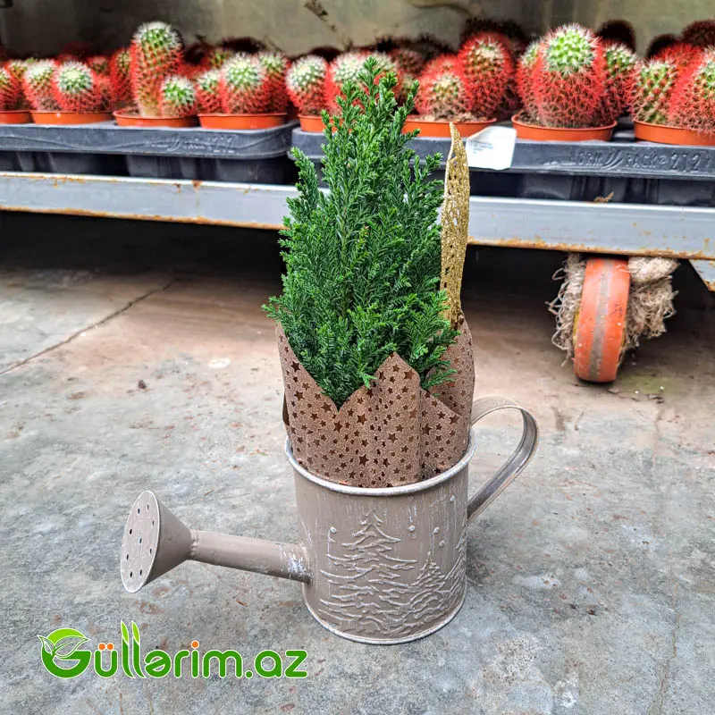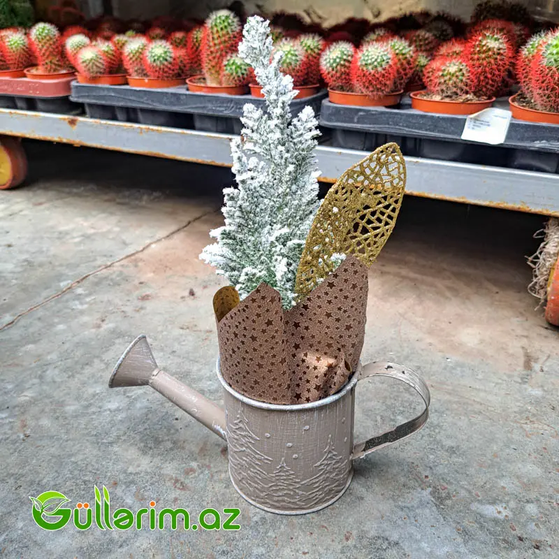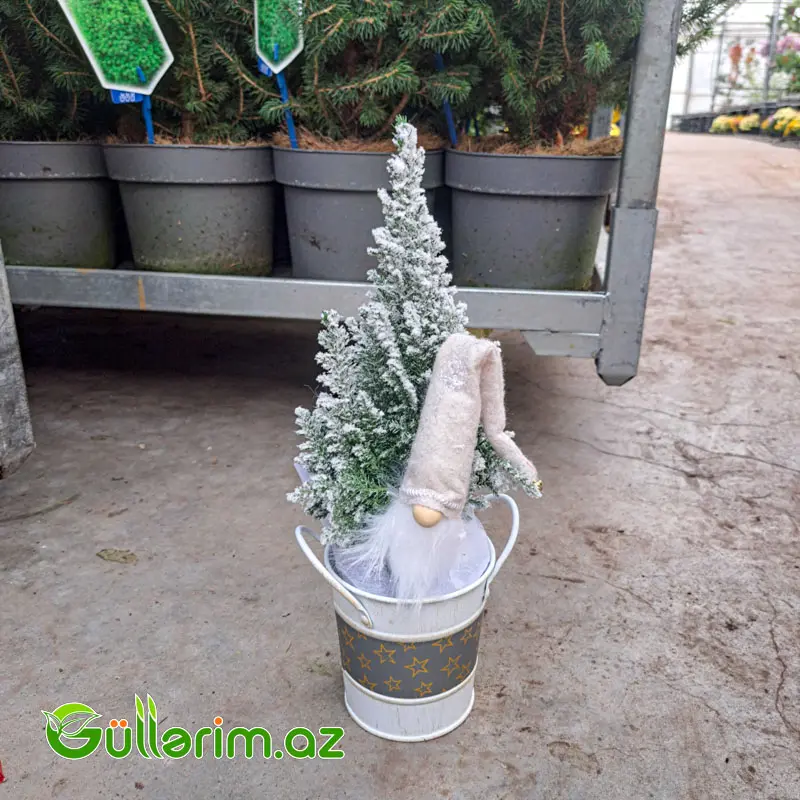 - Material: Mini süni şam ağacı, tekstil Şaxta Baba fiquru, metal dekor qabı