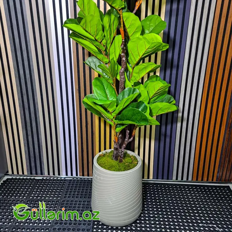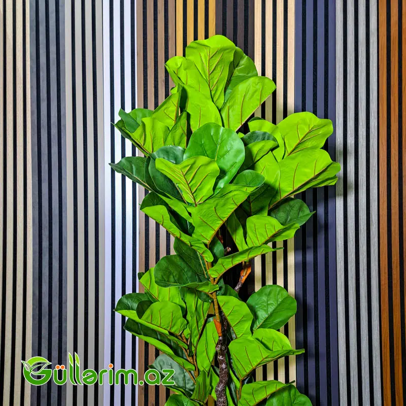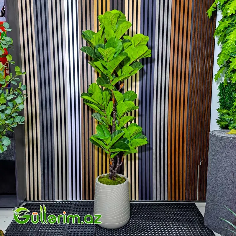 Süni Fikus Lirata iri, parlaq və skripka formalı yarpaqları ilə müasir interyer dizaynının ən trend bitkilərindən biridir. Təbii Fiddle Leaf Fig baxımı çətin bitki sayılsa da, süni variantı eyni estetik effekti heç bir qulluq tələb etmədən təqdim edir. Minimalist, skandinav və premium dizaynlı məkanlarda çox istifadə olunur. Ev, ofis, otel, salon və vitrinlər üçün ideal seçimdir.