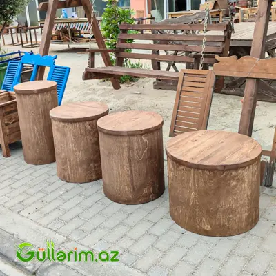 • Bağ və həyət dekorasiyasında oturacaq və masa kimi
