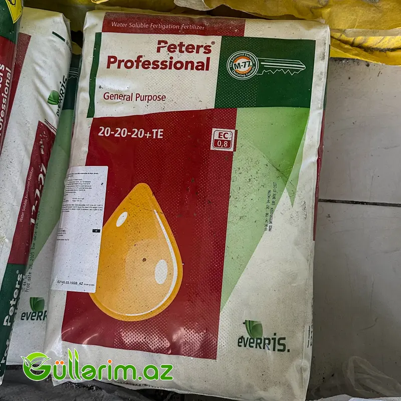 Peters Professional 20-20-20+TE, bitkilərin bütün inkişaf mərhələləri üçün nəzərdə tutulmuş, suda tam həll olan balanslaşdırılmış universal (General Purpose) gübrədir. Tərkibindəki bərabər nisbətli azot, fosfor və kalium (NPK) bitkinin həm kök, həm də yaşıl kütlə inkişafını eyni vaxtda dəstəkləyir.